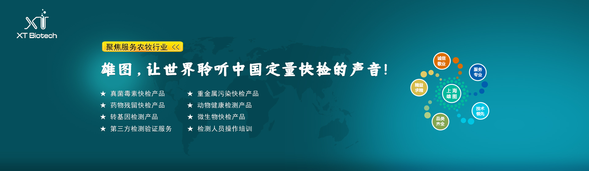上海雄圖生物科技有限公司(以下簡稱“上海雄圖”)是專注為食品安全與動物健康領(lǐng)域內(nèi)提供精準快速檢測解決方案的高新技術(shù)企業(yè),自主開發(fā)的真菌毒素與藥物殘留?合?熒光免疫定量POCT檢測系統(tǒng)、重金屬快速定量檢測系統(tǒng)、非洲豬瘟病毒等動物疾病熒光定量PCR快速檢測系統(tǒng)等,主要用于糧油米面、飼料、肉蛋奶制品生產(chǎn)加工和畜禽水產(chǎn)養(yǎng)殖行業(yè)及其監(jiān)管流通行業(yè)。公司在無錫建立了研發(fā)生產(chǎn)基地和第三方檢測服務(wù)平臺,結(jié)合市場需要不斷研發(fā)推出新的快檢產(chǎn)品和檢測服務(wù)...[詳情]